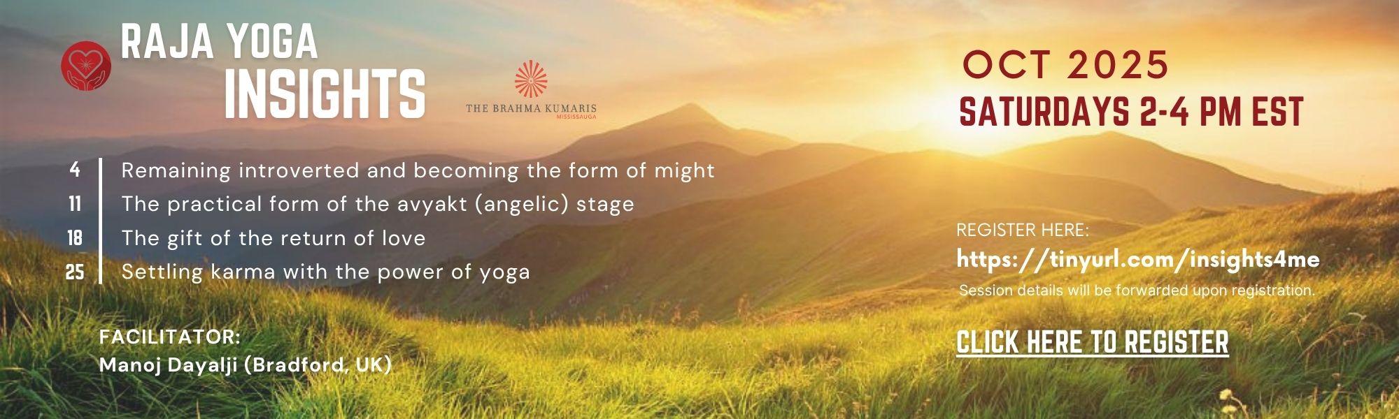 In a Country that embraces diversity, art, nature and newness outside, the Brahma Kumaris Mississauga Centre invites you to embark on a journey inside to feel the newness of your nature of love, peace and happiness.