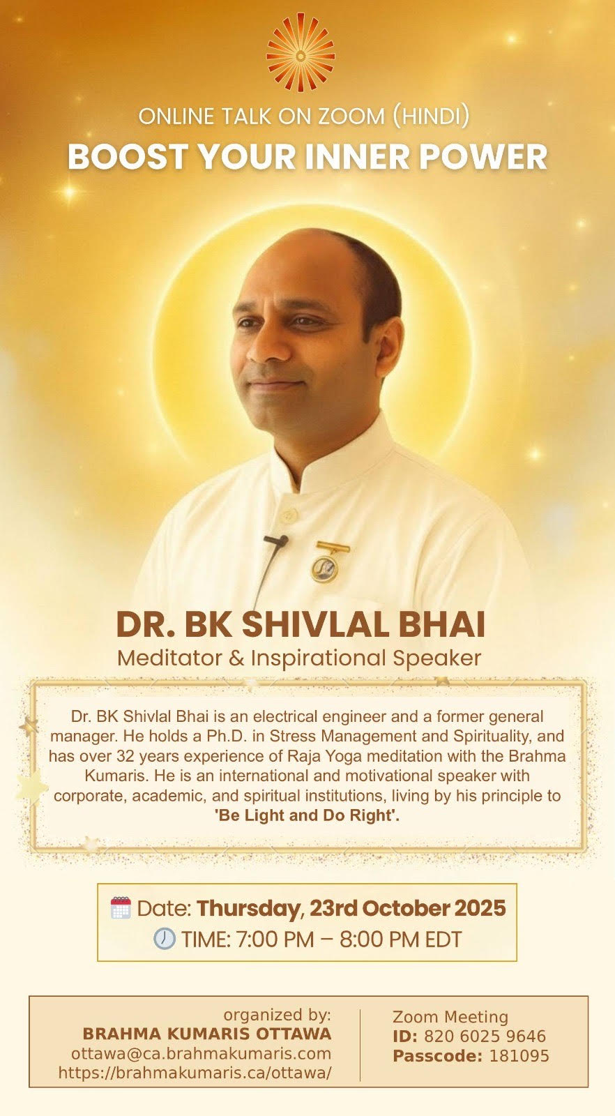 Please save the date for a special class by special guest BK Shivlal Kawale