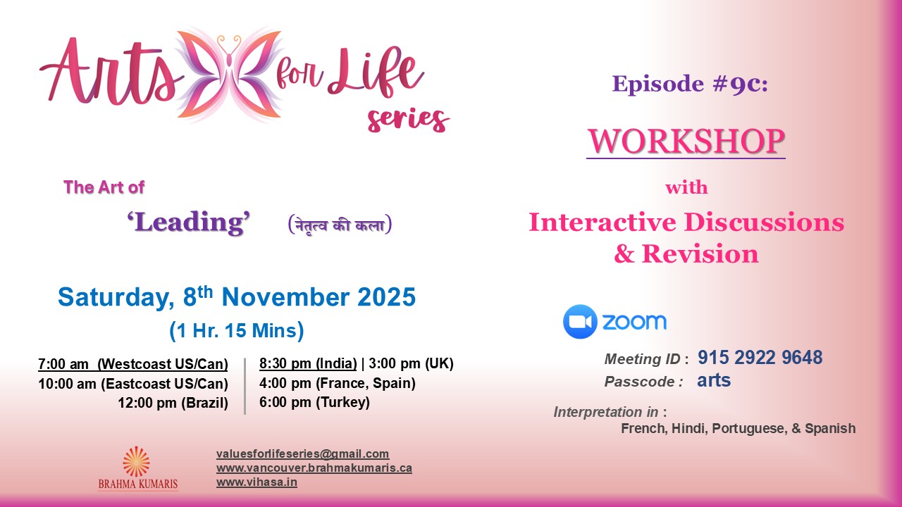 This course serves as an introduction to meditation designed for beginners. Raja Yoga, often referred to as ‘yoga for the mind,’ aids in channeling thought energy towards creating and sustaining feelings of peace, love, and happiness.